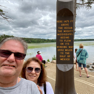 The river starts here, flows north 30 miles to Bemidji, where it then turns south on the way to the gulf. The water flowing past us today will reach the gulf 90 days from now.